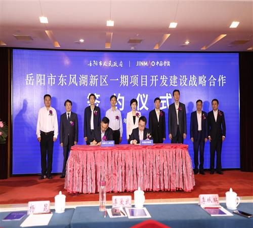 5月13日上午,市政府與中國金茂控股集團有限公司正式簽訂《岳陽市東風湖新區一期項目開發建設戰略合作協議》,這標志著東風湖新區開發建設邁出了實質性步伐。市委副書記、市長李愛武出席并致辭,金茂集團總裁李從瑞,市級領導楊昆、李可波,市 政府秘書長劉傳漢出席。集團公司黨委書記、董事長游志堅和在家領導班子成員參加。
